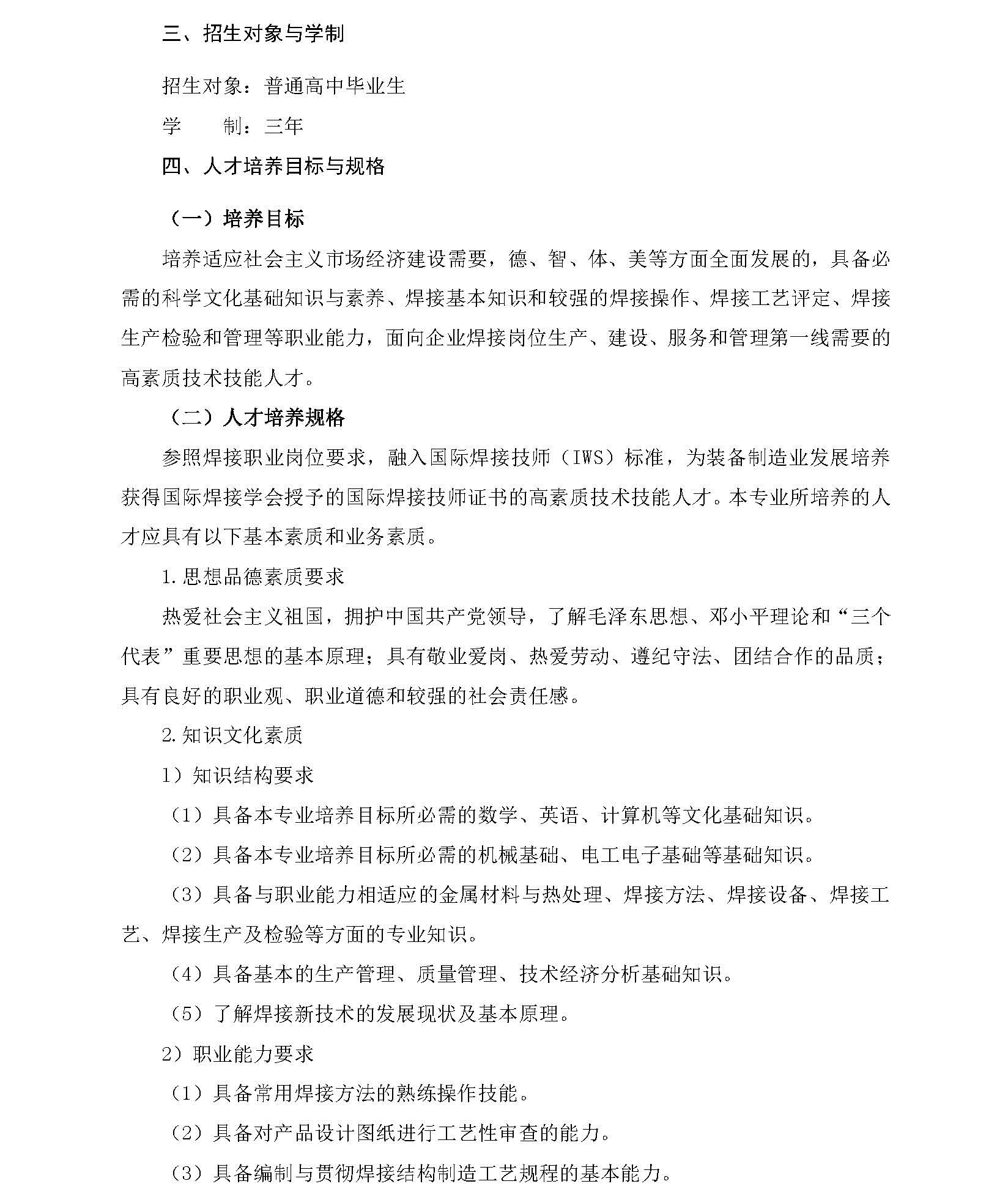焊接技术及自动化专业人才培养方案(通用型)