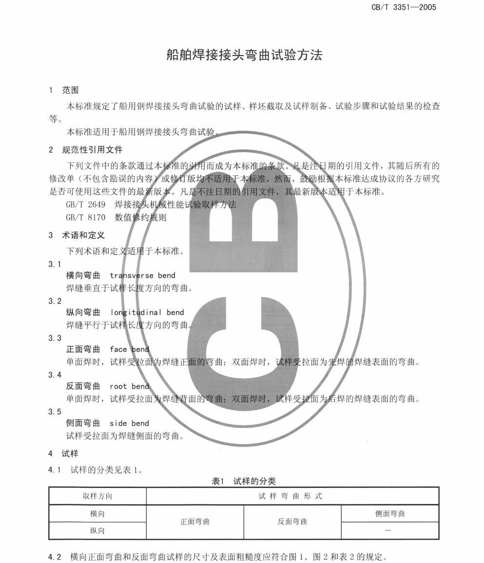 GBT 3351-2005 船舶焊接接头弯曲试验方法
