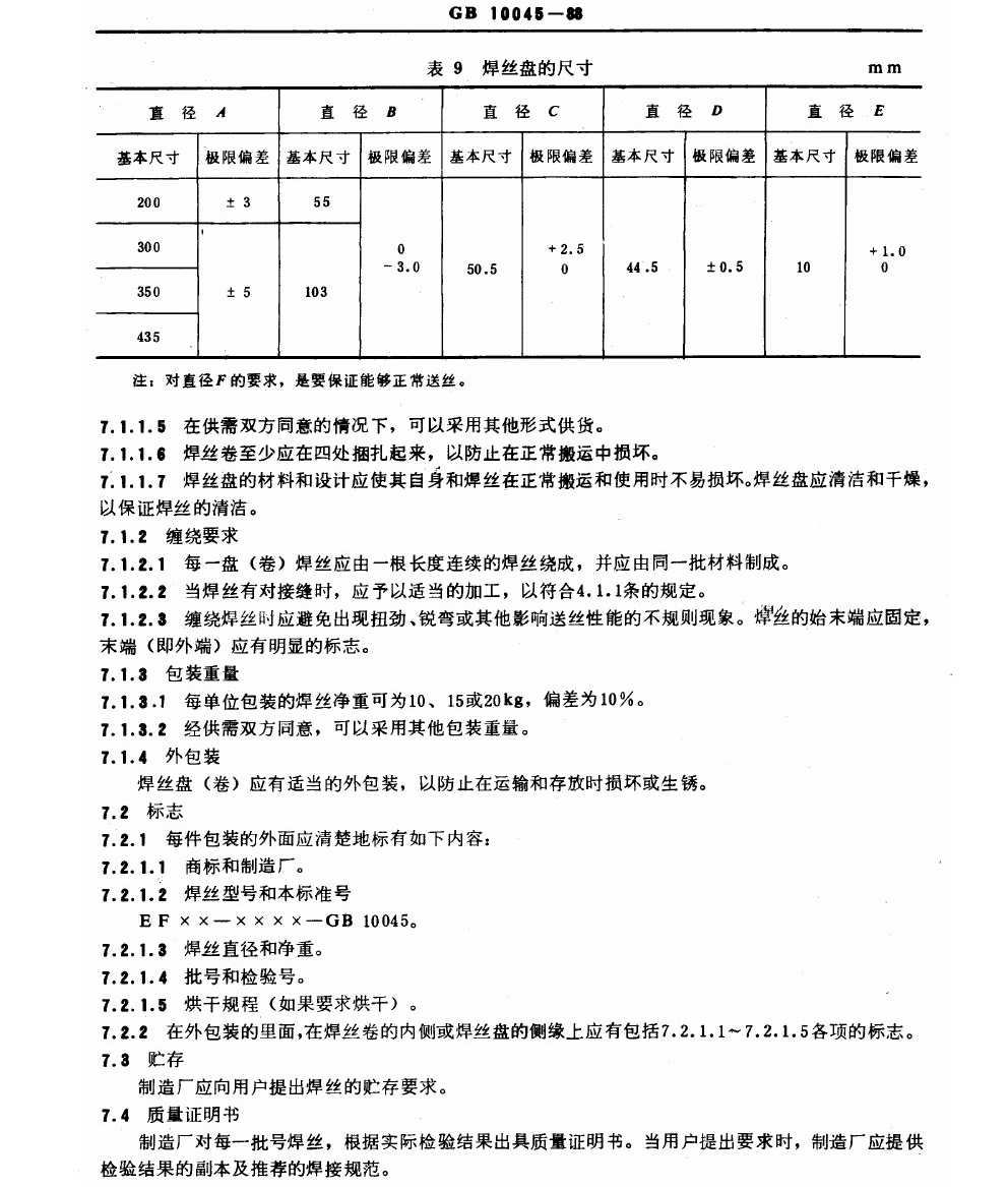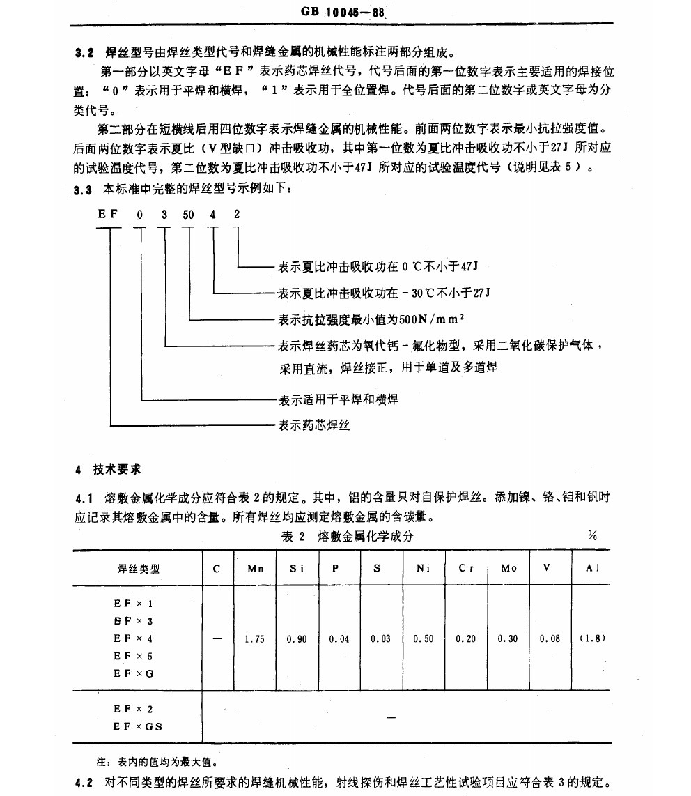 GB 100445-88 碳钢药芯焊丝