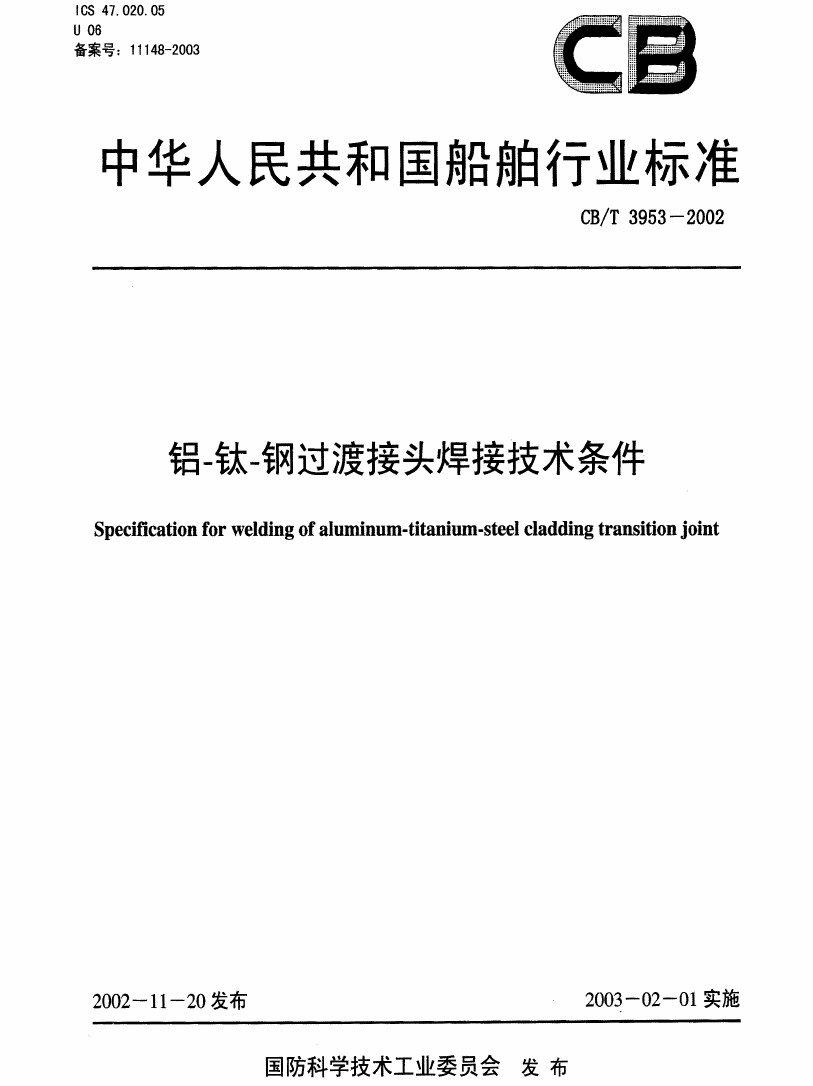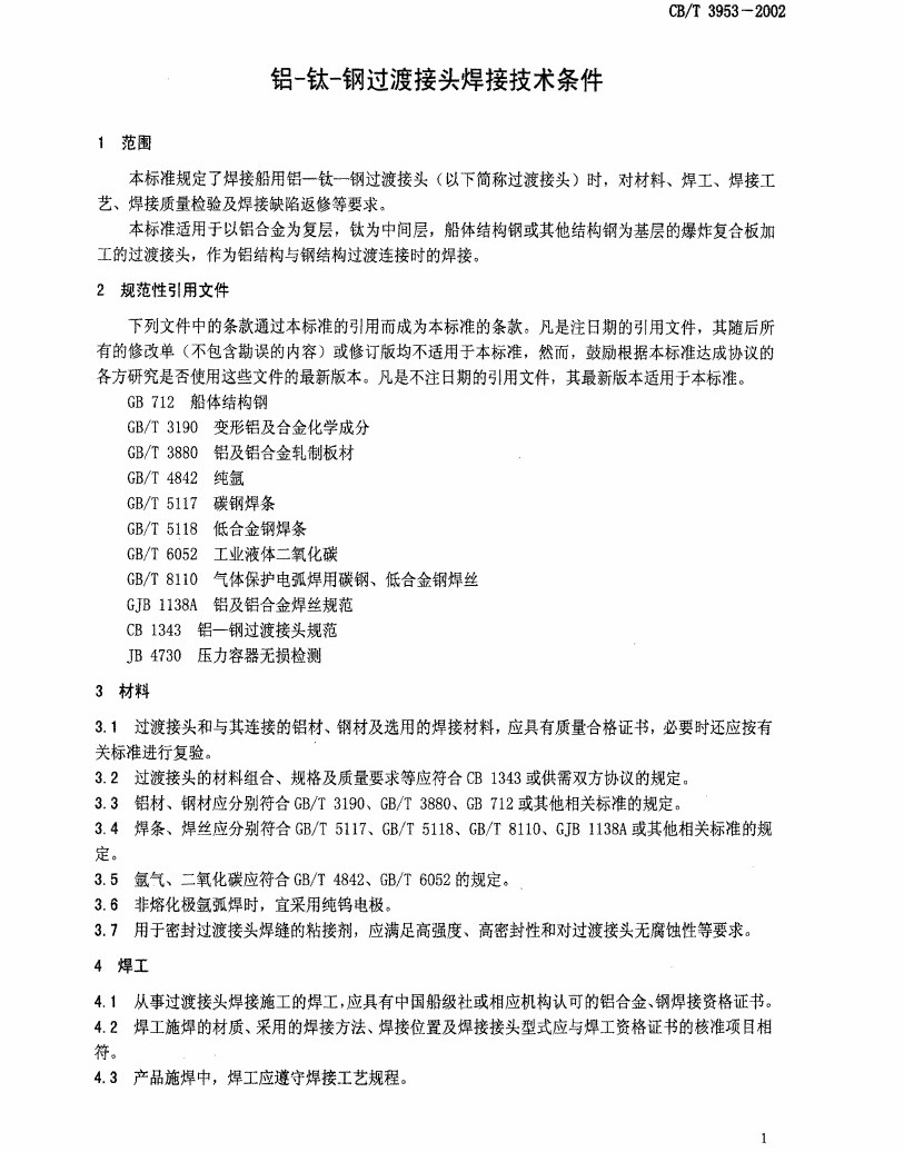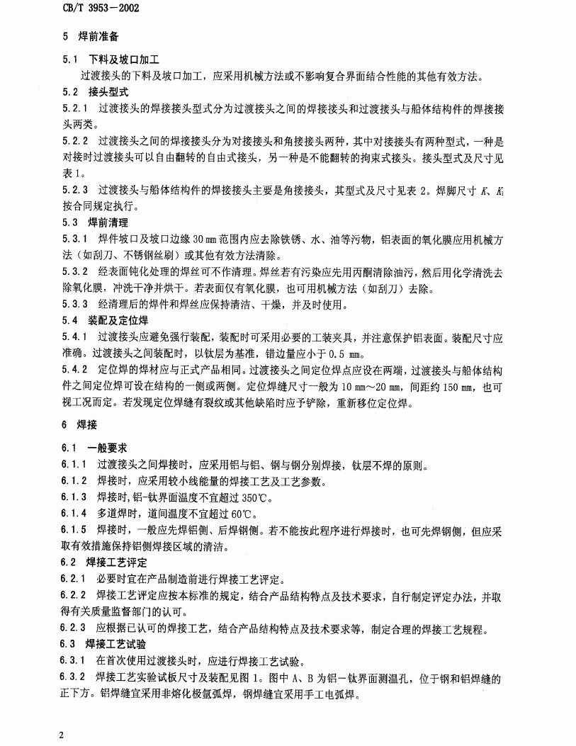 GBT 3953-2002 铝-钛-钢过渡接头焊接技术条件