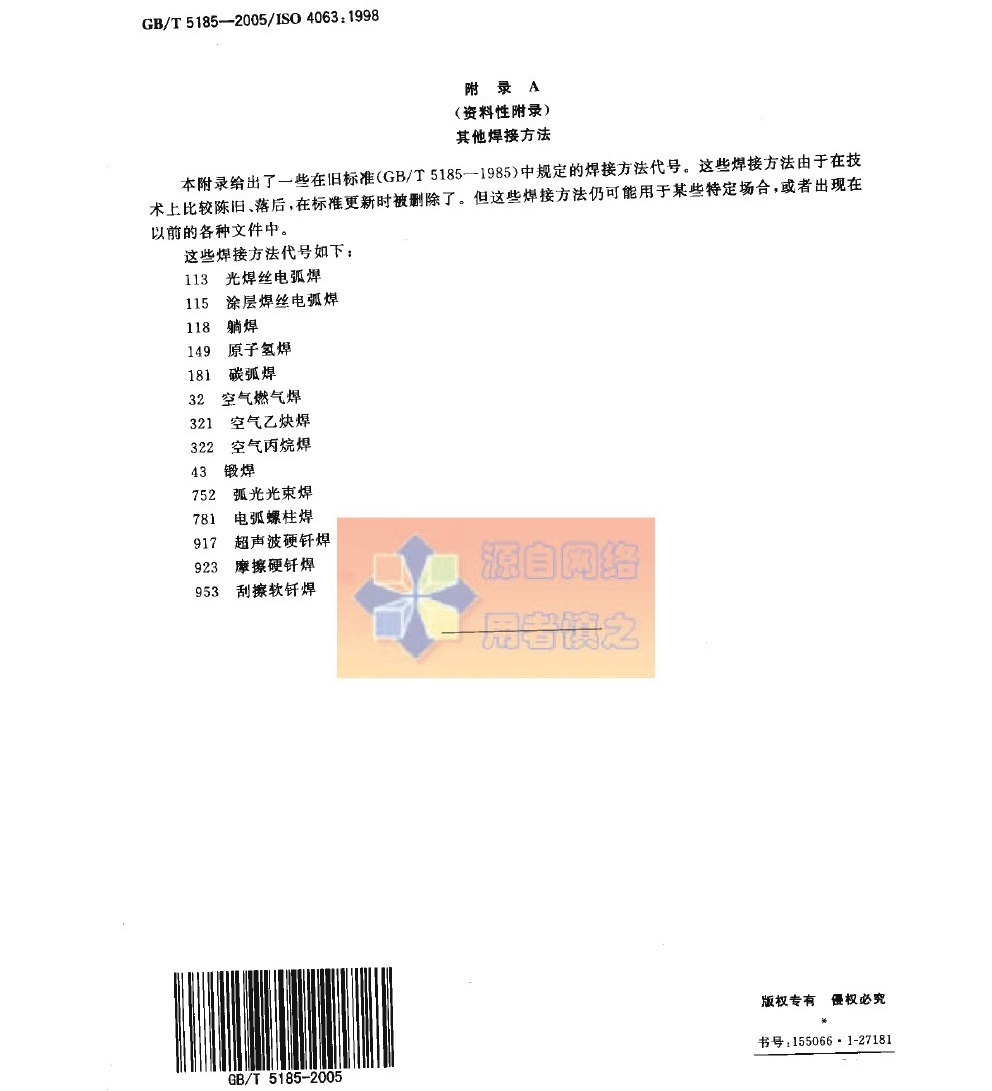 GBT 5185-2005 焊接及相关工艺代号方法_Password_Removed