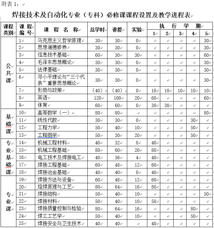 焊接技术及自动化专业(专科)人才培养方案